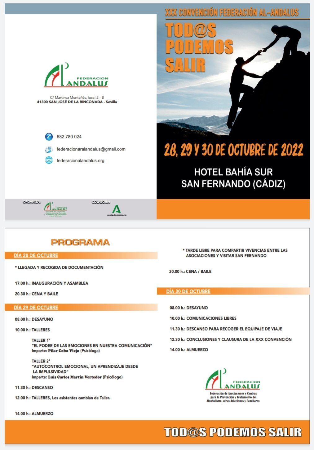 INSCRIBETE : en los teléfonos 606214605- 660896011, ar.san.jose.rda@gmail.com , web: alcoholicos reabilitadossanjose.org