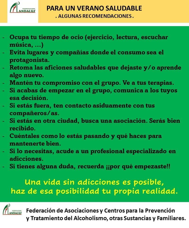 Durante el verano muchas personas pueden volver a caer en el peligro de retomar sus adicciones. Se trata de una etapa de ocio, de fiestas y de compañía, y si tu ambiente no es el idóneo esto puede provocar que bajes la guardia y que vuelvas a los malos hábitos. Aquí unos consejos para impedirlo.