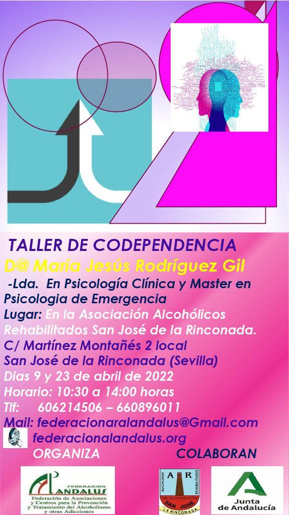 Nuevo taller que realizaremos en la Asociación AR. San José esta vez sobre la codependencia y se impartirá en dos jornadas, los días 9 y 23 de abril .